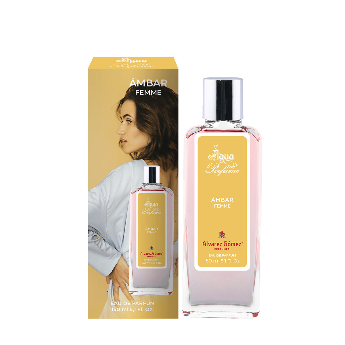 El producto se presenta en un envase de vidrio templado 150 ml o 30ml perfecto para llevar a todas partes, con vaporizador y caja de cartón encelofanada.